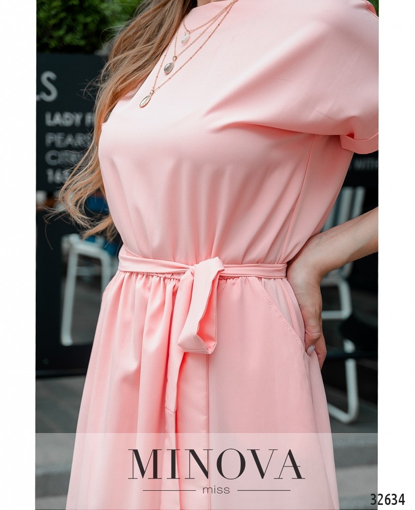 Такие симпатичные оттенки платьев из новой коллекции Minova радуют глаз своей палитрой. Как будто ассорти конфет! Если пастельный – то очень нежный и чистый, если яркий – то глубокий и запоминающийся. Представленная модель платья застёгивается сзади на пуговку; на поясе – резинка, моделирующая талию и создающая лёгкие волны на подоле. Кроме того, в комплекте пояс. В наличии карманы. Вырез горловины – полукруглый, а вот подол – с запАхом. Ткань тонкая, не тянется и не просвечивает.