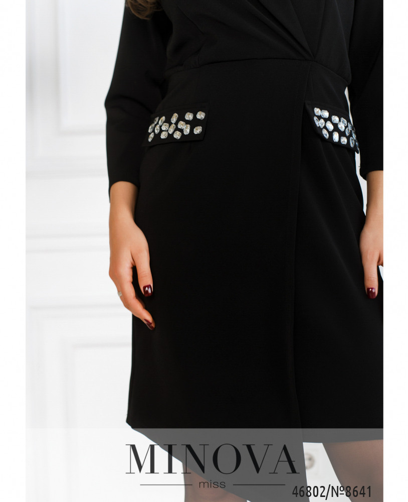 В женственном платье-миди приталенного силуэта, подшитом на запах, вы будете очаровательны как в офисе, так и на вечеринке или празднике. Эта модель дополнена воротником с лацканами, рукавами 7/8 без манжет и накладными клапанами без карманов, дополненными декоративными украшениями. Изюминку добавляет ассиметричный подол, удлиненный спереди. Платье застегивается на змейку, вшитую по спинке.