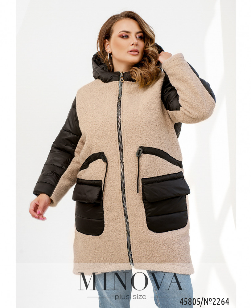 Теплая и уютная куртка согреет вас даже в самые холодные осенние дни. Модель дополнена капюшоном и накладными карманами, а полочка, выполненная из мягкого букле, позволит вам сохранить тепло и согреет в ветренную погоду.