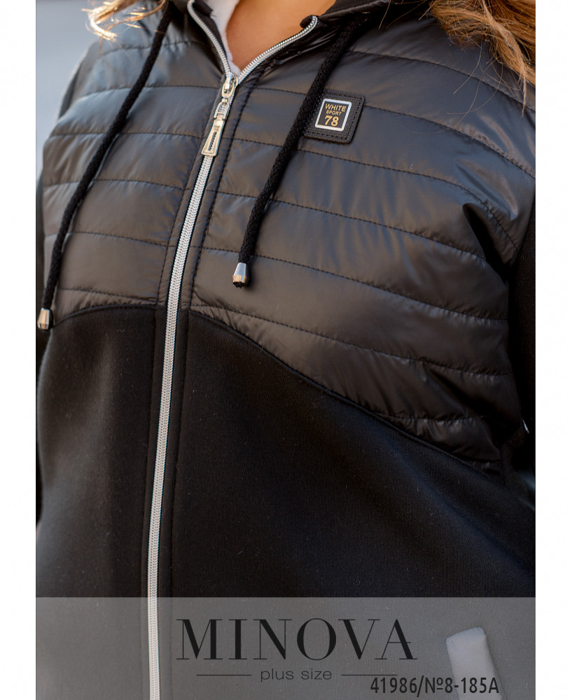 Удобная повседневная куртка батал с подкладкой на месте простёганных частей. Капюшон изнутри мягкий, снаружи гладкий. Сзади на подоле шлица с декоративной лентой. Застёгивается на молнию спереди по центру. Капюшон с пропущенным шнурком. Сбоку на рукавах декоративные лампасы. По бокам - врезные карманы.