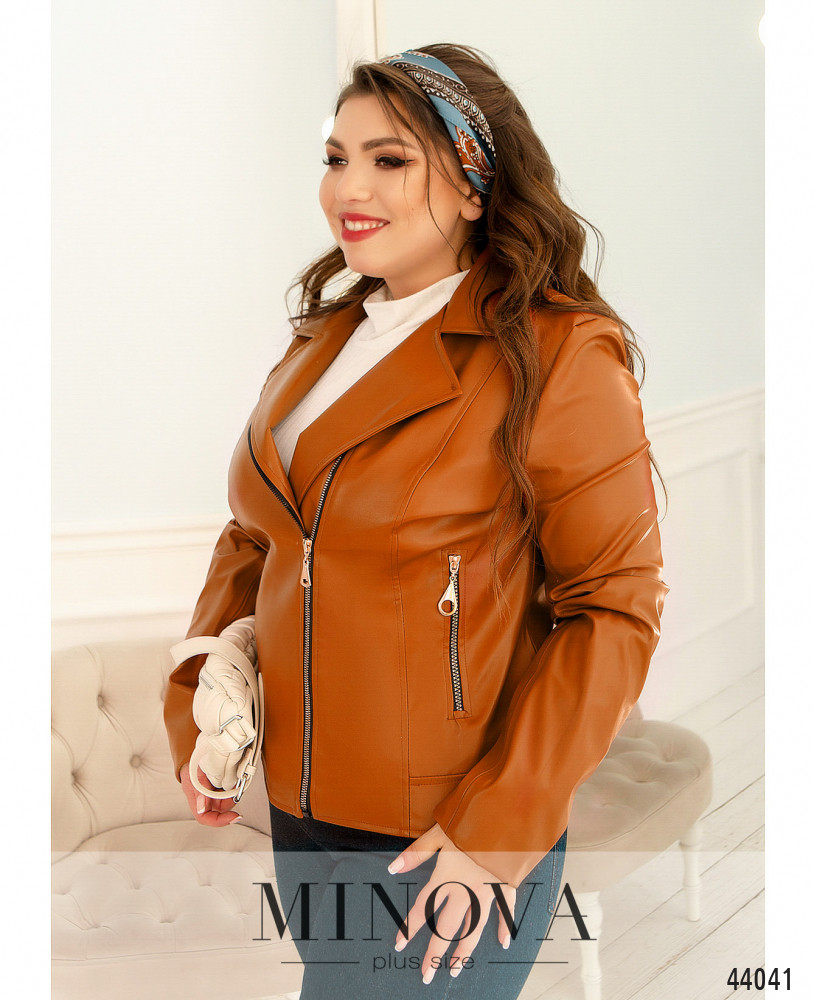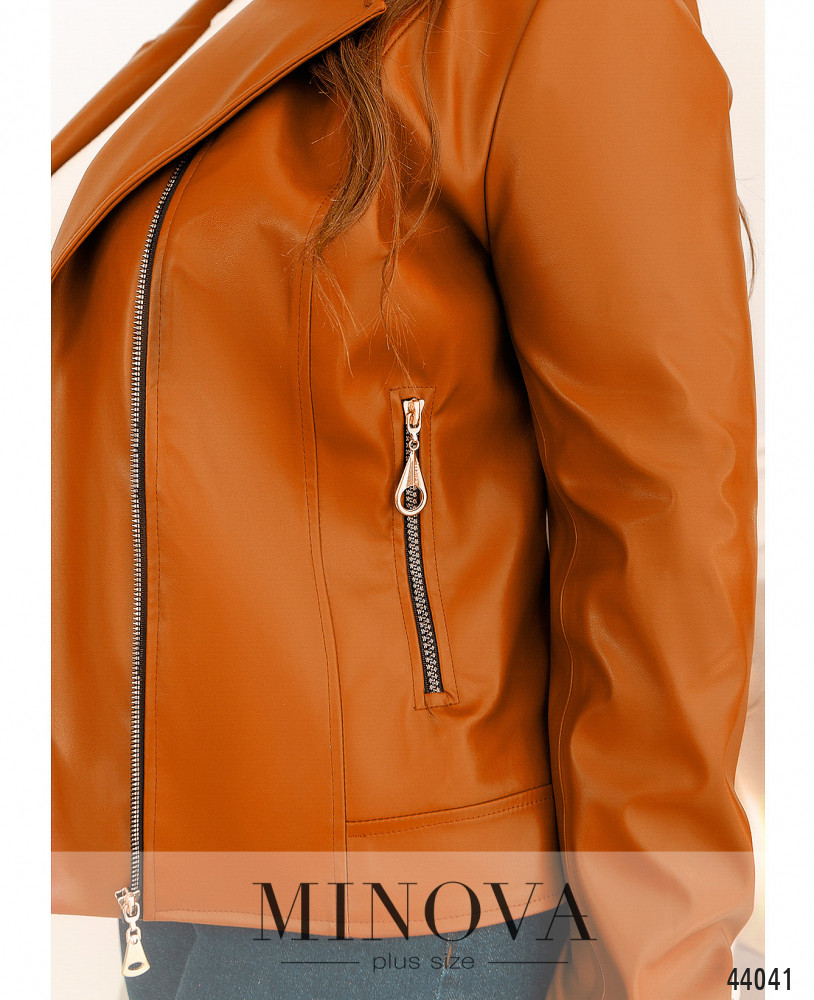 Стильная и актуальная куртка фасона "косуха", с диагональной молнией и резными лацканами. По бокам - прорезные карманы под молнией. Рукава без манжет. С мягкой подкладкой.