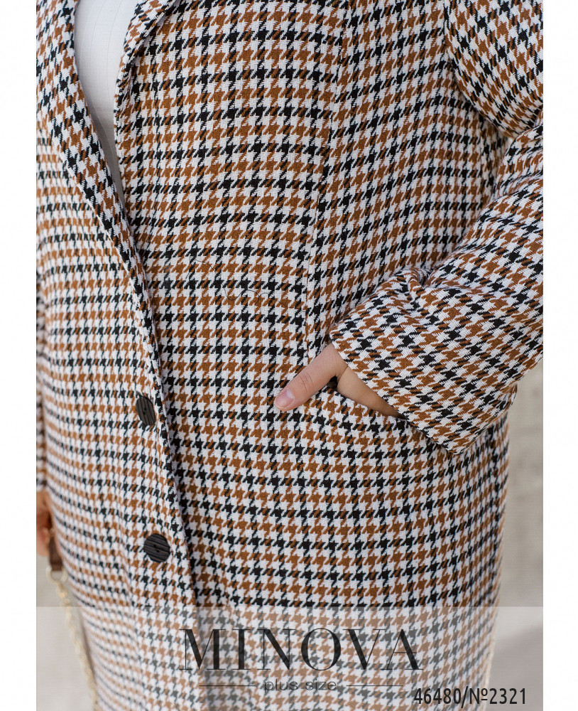 Стильное и яркое пальто с актуальным принтом в мелкую "гусиную лапку" создает не только красоту, уверенность и комфорт, но и подчеркивает индивидуальный стиль. Модель на подкладке дополнена воротником с лацканами и удобными карманами по бокам.