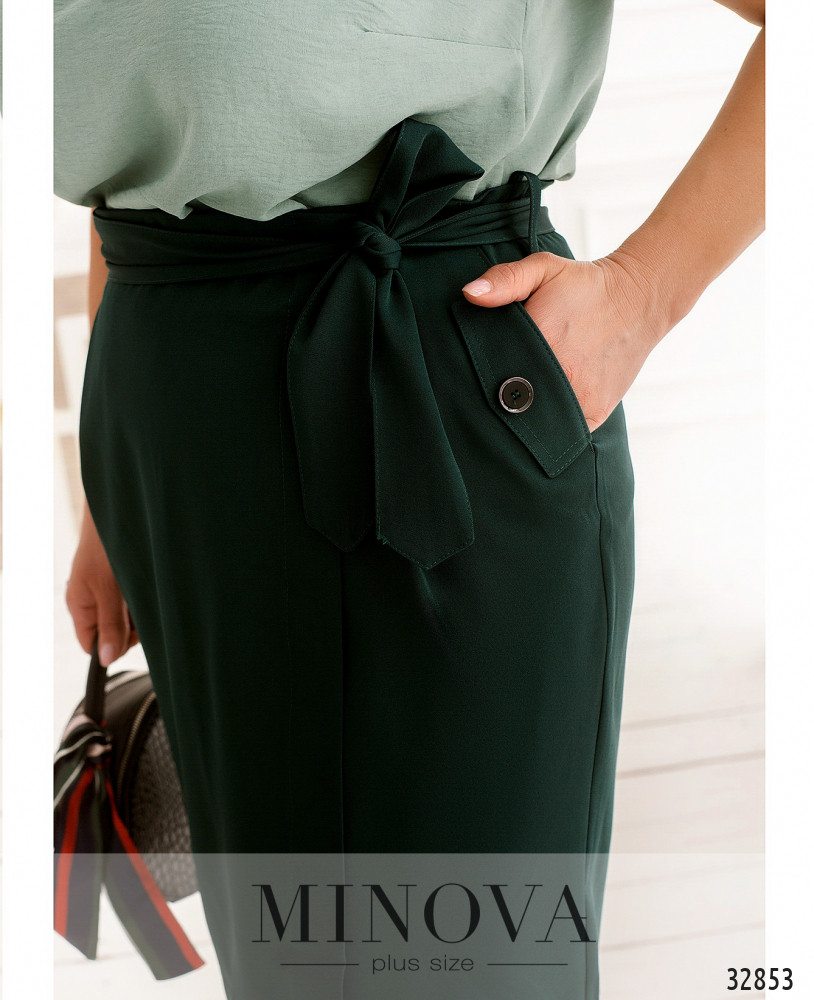 Строгая прямая юбка батал из новой коллекции Minova понравится всем, кому нужно периодически соблюдать дресс-код на работе или на учёбе. Можно выбрать супер-классическую чёрную, тёмно-синюю или более нейтральную бежевую. Юбка застёгивается на запАх с помощью одной пуговицы на поясе и дополнительно удерживается с помощью вшитого широкого пояса, который можно завязать фантазийным узлом и добавить индивидуальности в строгий образ. В наличии карманы с накладными клапанами, украшенными пуговкой. Прямой крой и фасон предполагает элегантные туфли на высоком каблуке.
