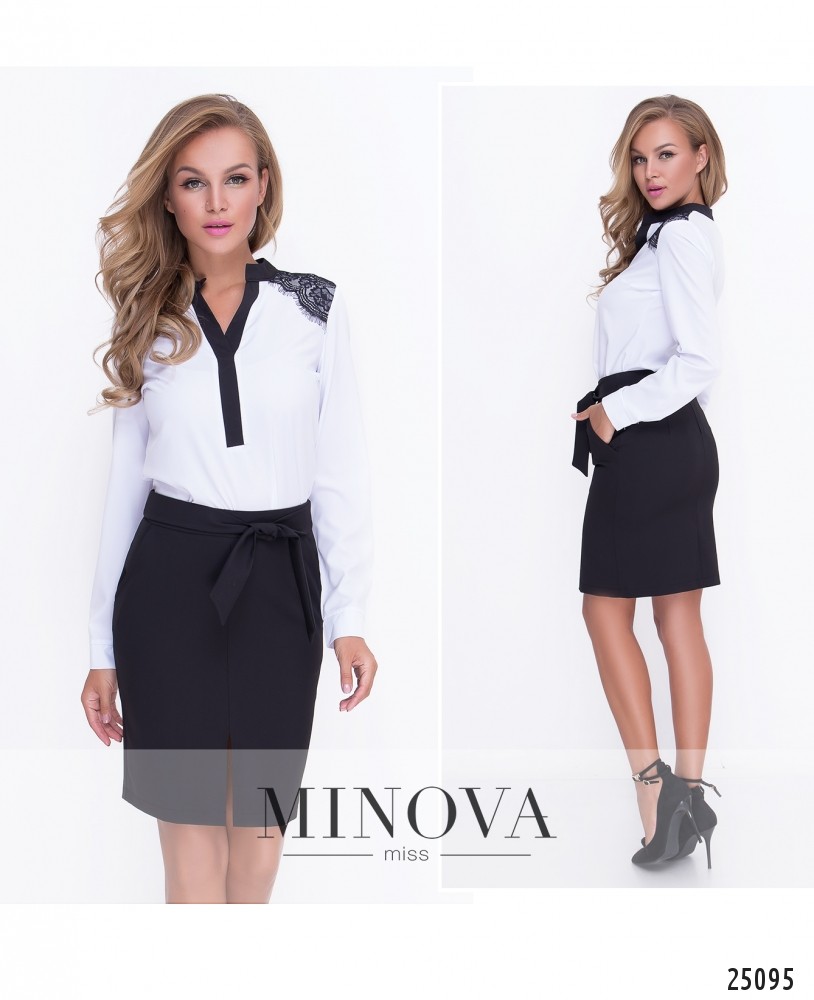 Юбка – карандаш в деловом стиле с разрезом на лицевой стороне. Юбка дополнена карманами и пришитым поясом. На спинке застегивается изделие на скрытую молнию.