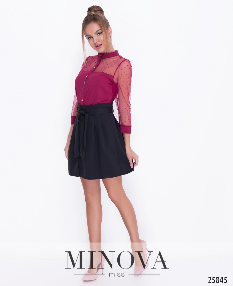 Игривая юбка-трапеция в легкую складку. Юбочка на высокой посадке с поясом. На лицевой стороне полностью застегивается на пуговицы.