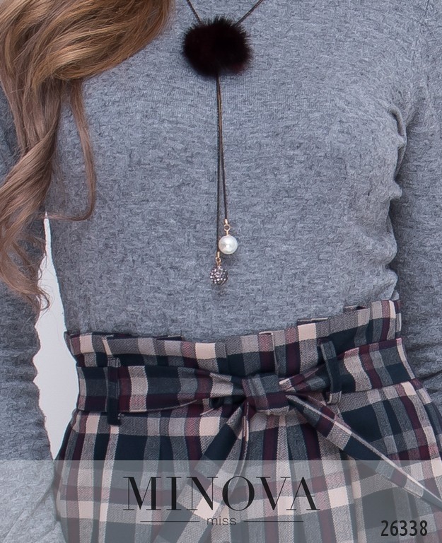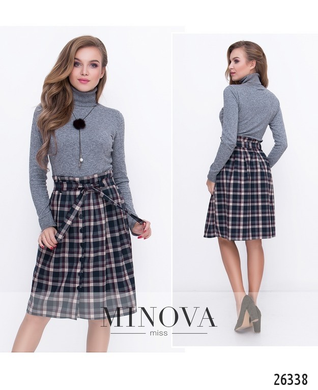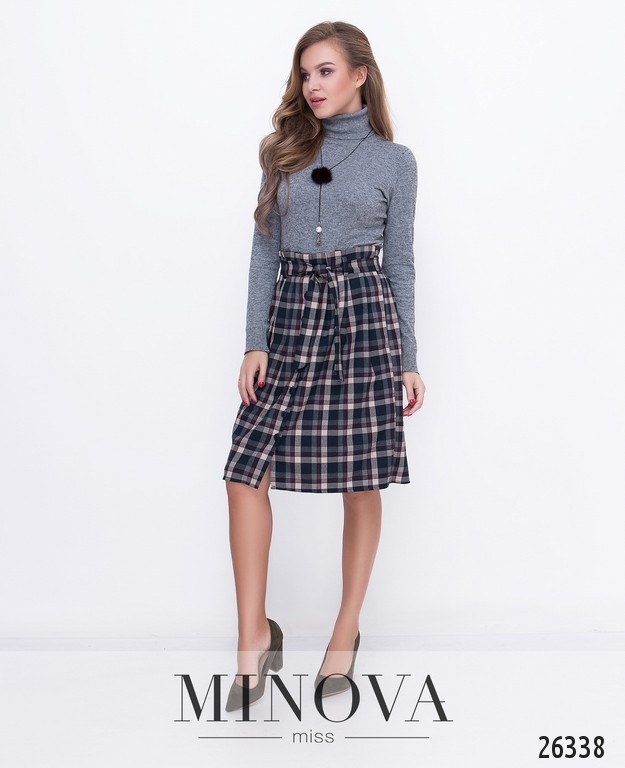 Юбка А-силуэта в клетку, которая является самым модным принтом осени 2018. Изделие с высокой талией на защипах и со шлейками для пояса. Юбка застегивается на пуговицы вдоль передней планки.