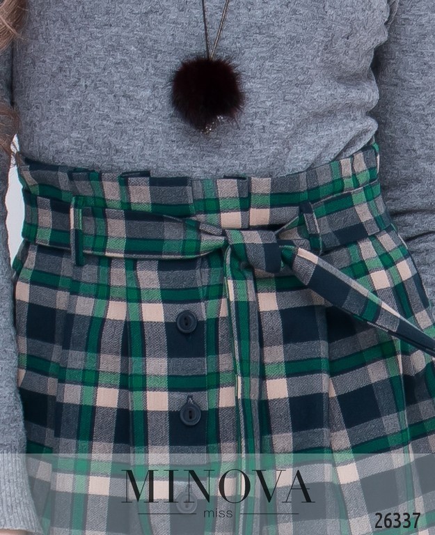 Юбка А-силуэта в клетку, которая является самым модным принтом осени 2018. Изделие с высокой талией на защипах и со шлейками для пояса. Юбка застегивается на пуговицы вдоль передней планки.