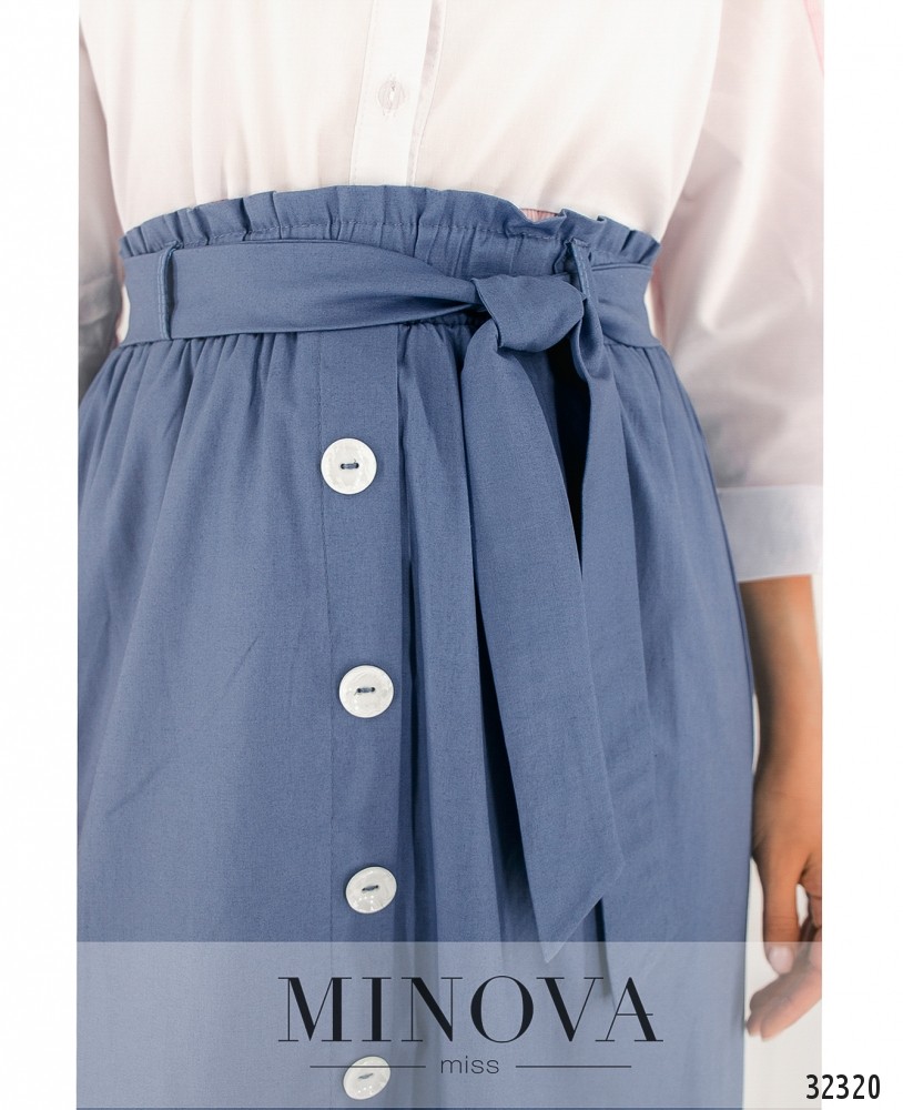 Лёгкая юбка Minova от из плотной ткани, на резинке – пояс, спереди – пуговки, так что её удобно и надевать, и гладить после стирки. Благодаря резинке юбка выглядит слегка плиссированной, не стесняет движений. Карманов нет, ткань на бёдрах ложится аккуратно. Купить такую юбку – значит оставить себе возможность выбора: надеть туфли на каблуке или любимые кроссовки. В любом случае образ будет стильным и актуальным!