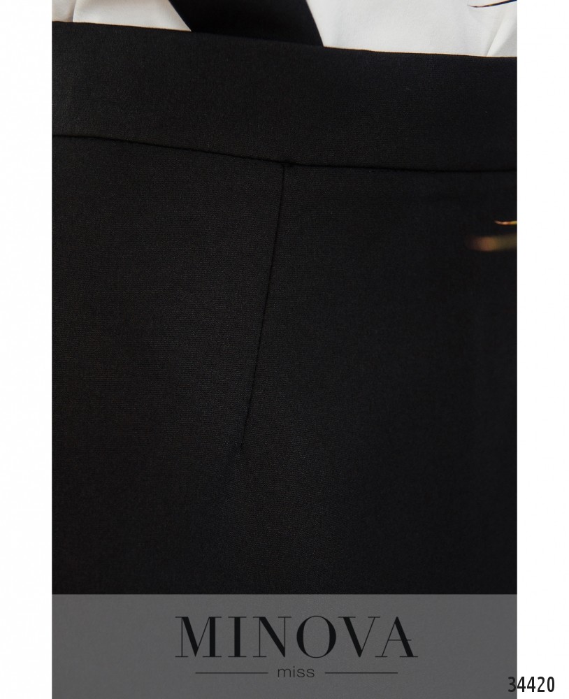 В базовом гардеробе любой девушки непременно должна быть строгая юбка прямого кроя, для самых разных официальных мероприятий. Minova предлагает универсальную модель юбки с поясом, длина – миди, ткань очень лёгкая. Карманов на юбке нет, застёгивается на вшитую по спинке змейку. Сзади на подоле – небольшой вырез для удобства при ходьбе и когда вы сидите. Чёрный цвет и прямой крой позволят сочетать такую модель с нарядными блузами и тонкими свитшотами, обувь предпочтительна классическая, на каблуке или плоском ходу.