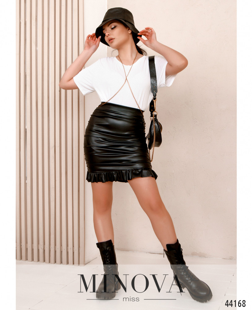 Стильная юбка без застёжек и карманов, по бокам ткань присобрана на резинки, в пояс вшита широкая резинка. Внизу оборки.