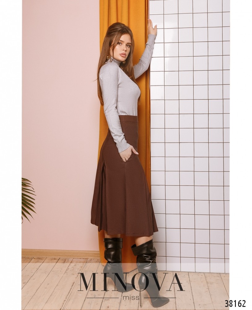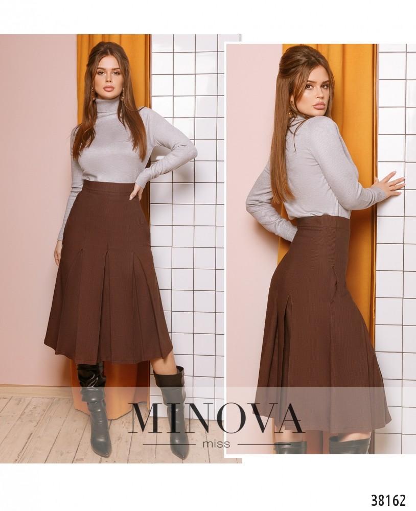 Очаровательная юбка с плиссировкой и высокой талией, с врезными карманами по бокам и вшитой слева потайной молнией.