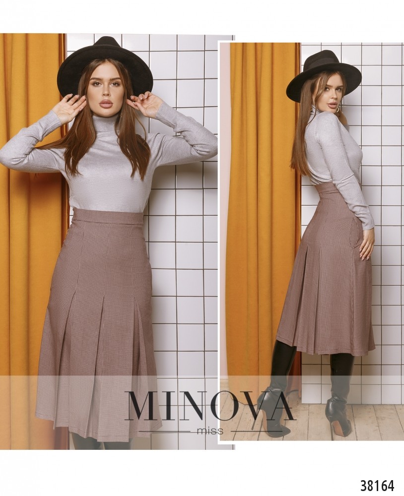 Очаровательная юбка с плиссировкой и высокой талией, с врезными карманами по бокам и вшитой слева потайной молнией.