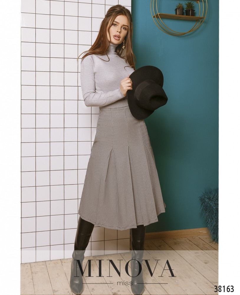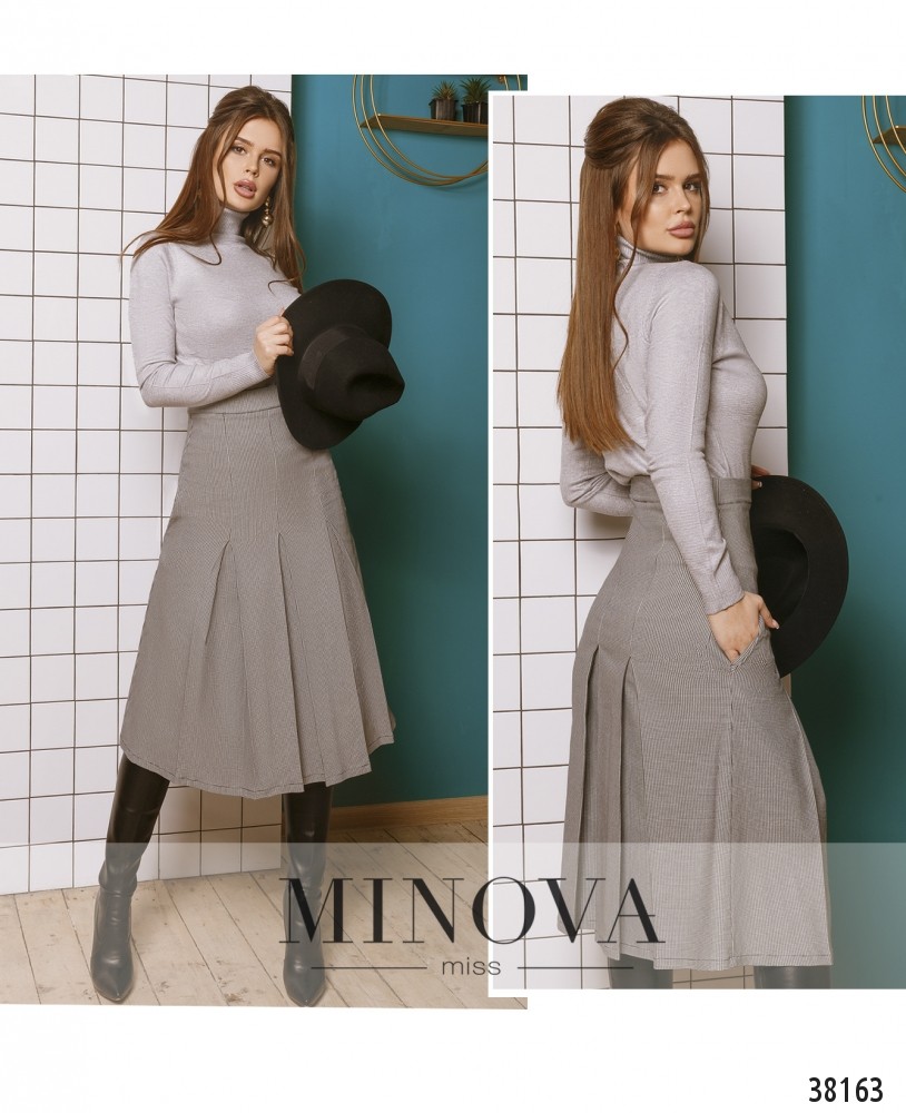 Очаровательная юбка с плиссировкой и высокой талией, с врезными карманами по бокам и вшитой слева потайной молнией.