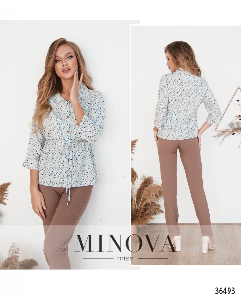 Легкая нарядная рубашка для твоего офисного дресс-кода или официального мероприятия. Рубашка с отложным воротничком, тремя пуговицами от верха почти до подола. Через талию пропущен шнурок, так что ты можешь сделать прямой крой достаточно приталенным. На левой стороне груди расположен небольшой накладной карман. Рукава длиной ¾ , без манжет. Можно сочетать со строгими брюками, джинсами или юбкой-карандашом.