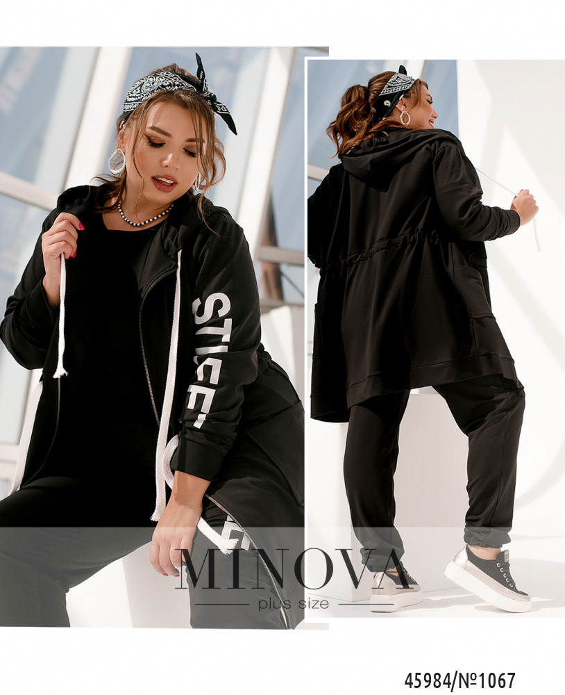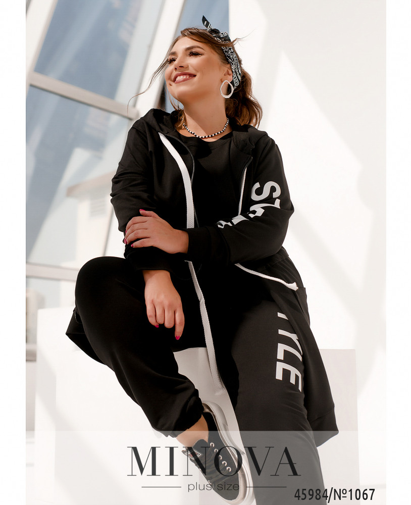 Мягкий практичный спортивный костюм идеально подходит для встреч с друзьями или прогулок по парку. В комплект входит удлиненная кофта на змейке с капюшоном и кулиской на талии, позволяющей сделать акцент на талии. Ее дополняют брюки-джоггеры в тон с карманами и резинкой, вшитой в манжеты и по линии талии.