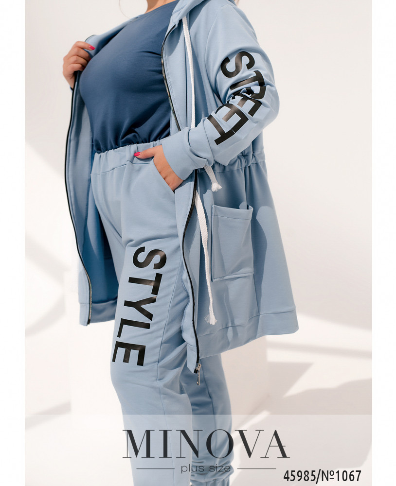 Мягкий практичный спортивный костюм идеально подходит для встреч с друзьями или прогулок по парку. В комплект входит удлиненная кофта на змейке с капюшоном и кулиской на талии, позволяющей сделать акцент на талии. Ее дополняют брюки-джоггеры в тон с карманами и резинкой, вшитой в манжеты и по линии талии.