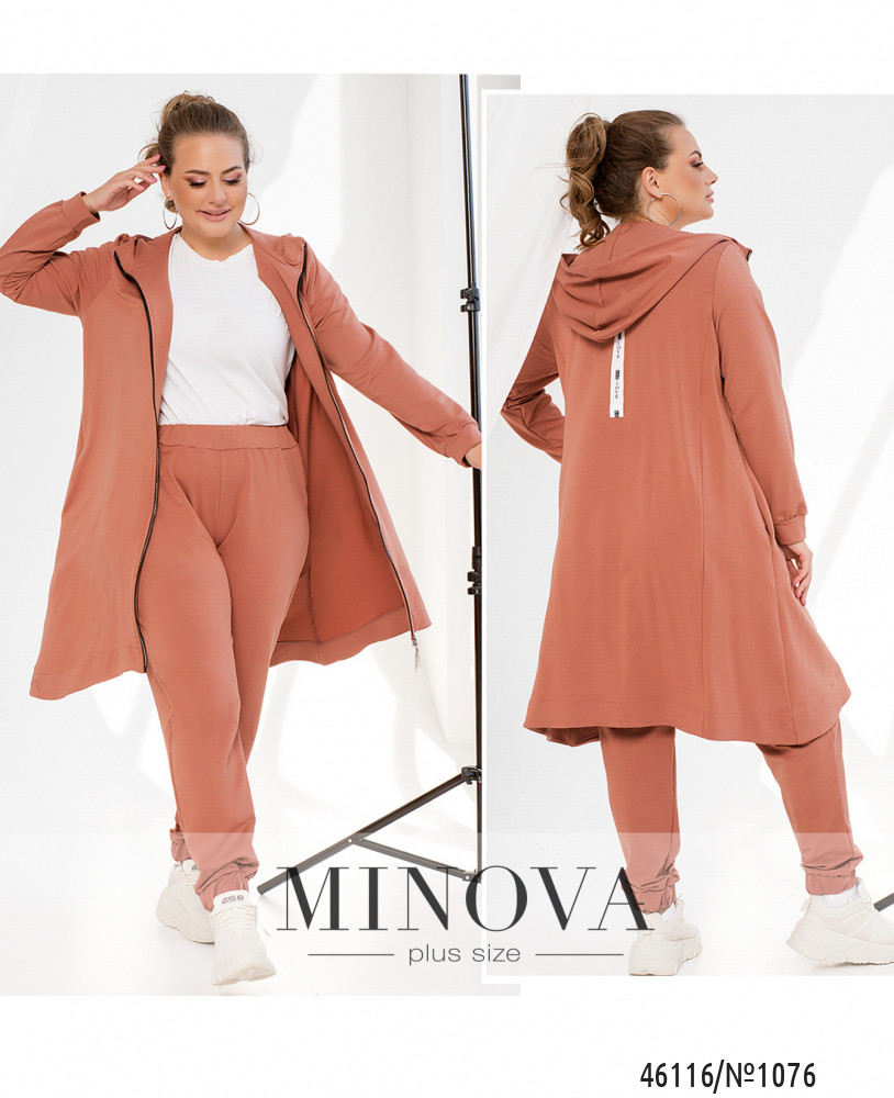 Яркий и комфортный спортивный костюм является поистине уникальной вещью, ведь он подходит всем, независимо от фигуры и возраста. Длинный кардиган на змейке с карманами, капюшоном и ассиметричным низом, удлиненным по спинке, идеально дополнен лаконичными брюками-джоггерами с карманами и резинками, вшитыми по линии талии и по низу штанин.