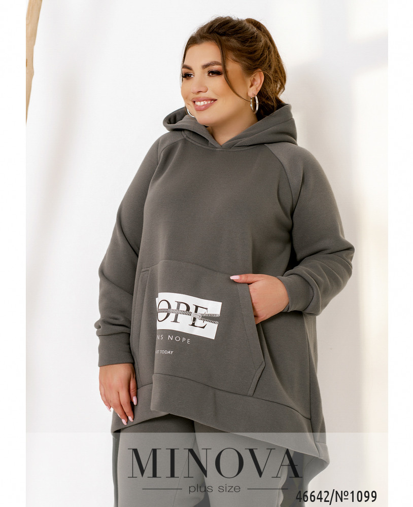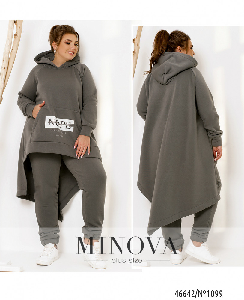 Яркий спортивный костюм нестандартного кроя не только дарит уверенность и комфорт, но и подчеркивает индивидуальный стиль. Минималистичные брюки-джоггеры с карманами в боковых швах и резинками, вшитыми по линии талии и по низу штанин, идеально дополняет необычная свободная туника с капюшоном и карманом-кенгуру, привлекающая внимание в первую очередь ассиметричным подолом. Пояс НЕ входит в комплект.