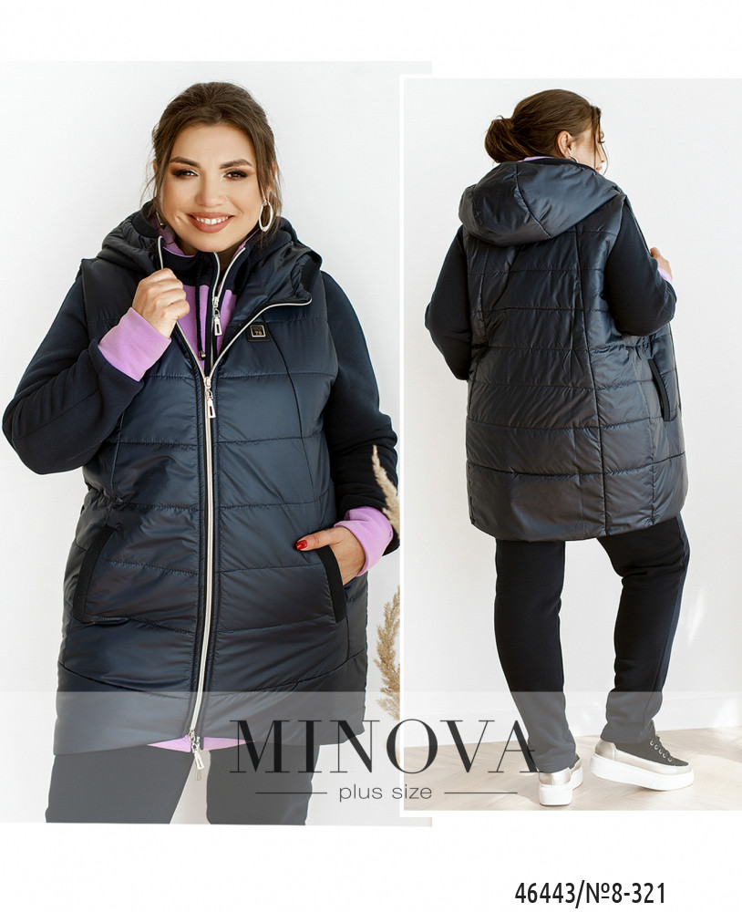Тканина: жилет - плащівка на синтепоні (щільність100грм), підкладка. Костюм - трикотаж трьохнитка на флісі