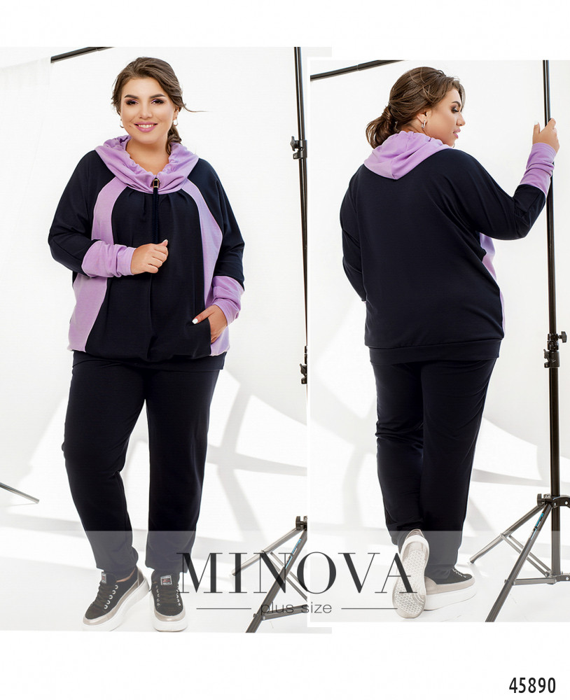 Контрастный спортивный костюм является поистине уникальной вещью, ведь он подходит всем, независимо от фигуры и возраста. Изюминкой данной модели является кофта с рукавами "реглан" и необычным воротником-капюшоном. Лаконичные спортивные брюки с карманами и резинкой, вшитой по линии талии, идеально дополняют комплект