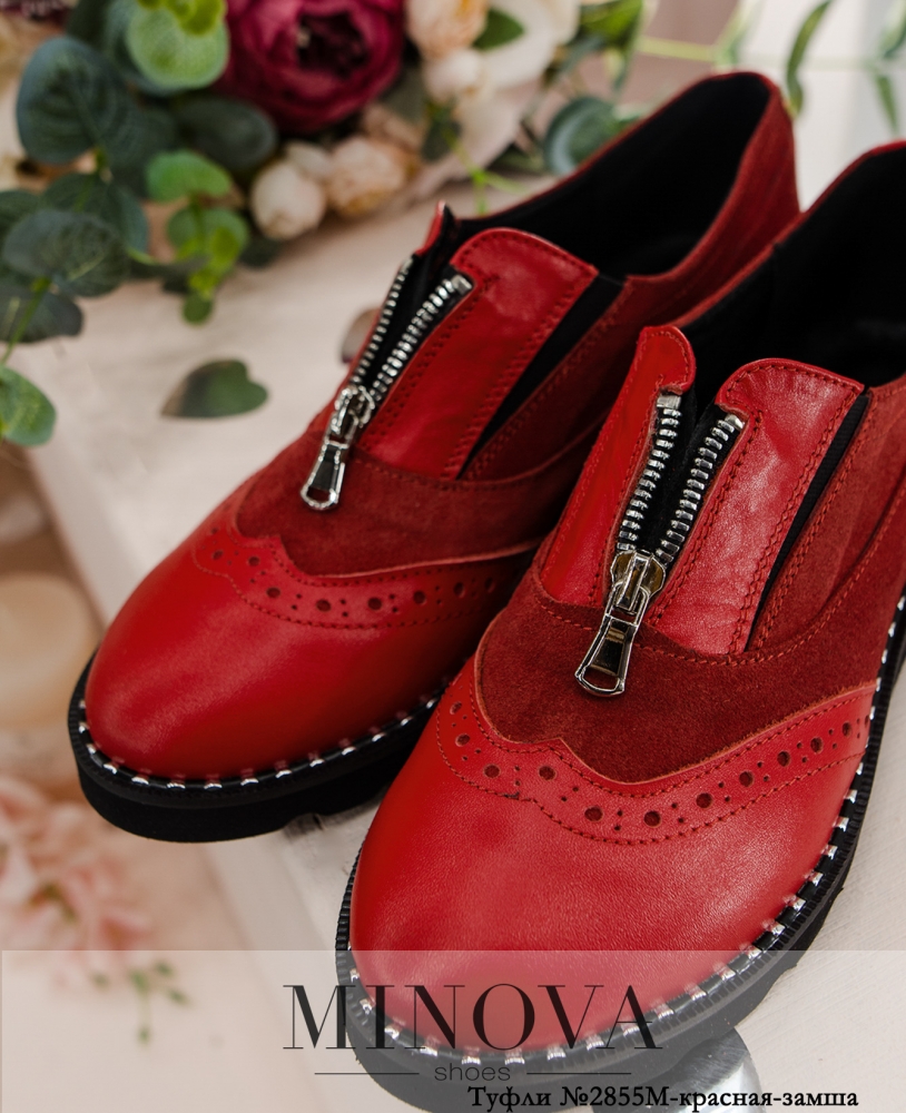Стильные туфли в "мужском" стиле с брогированным носком. На подъёме - небольшая змейка и вставки резинки по бокам. Подошва волнистая, по ранту украшена металлическими вставками. Туфли выполнены из натуральной мягкой кожи. Высота танкетки впереди: 1.5 см.
