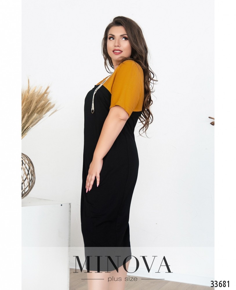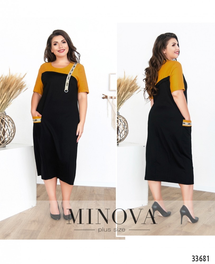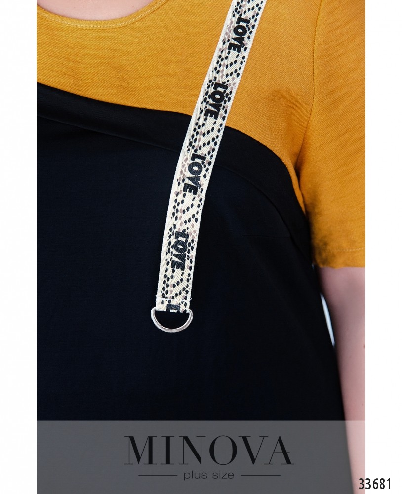 Лёгкое и нарядное полу-спортивное платье свободного кроя – прекрасный вариант от Minova на каждый день. Платье расставляет яркие акценты за счёт контрастной ткани и декоративных лент. Верх скошен в левую сторону, выполнен из яркого материала, таким же материалом оторочен и накладной карман на правом бедре, и ещё он украшен декоративной лентой. Лента пересекает верх от левого плеча до груди. Рукава короткие, вырез горловины полукруглый, платье без застёжек. Снизу на подоле – четыре продольных вытачки, немного сужающие подол к низу. Платье фасона «баллон» - удачный выбор для девушек с «прямоугольной» фигурой и типом «яблоко». Его можно сочетать с балетками, кроссовками или босоножками.