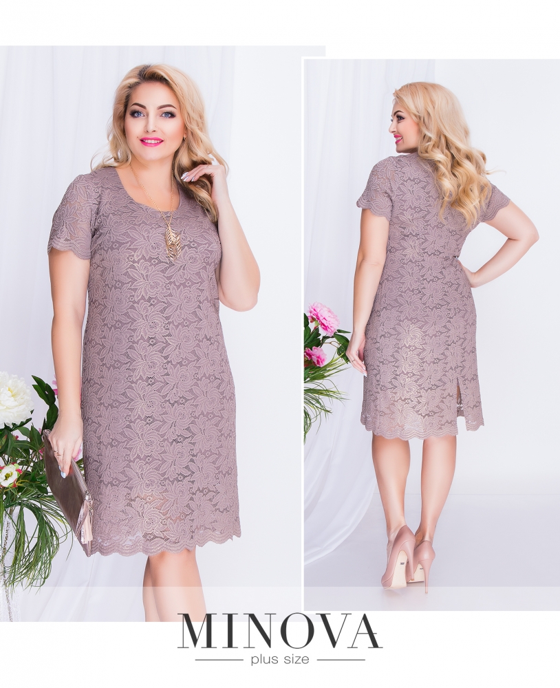 Прямое кружевное платье на подкладке, длиной до середины колена с круглым вырезом и коротким рукавом. Разрез до середины бедра сзади не сковывает движения. Платье изготовлено из плотной кружевной эластичной ткани с отливом.