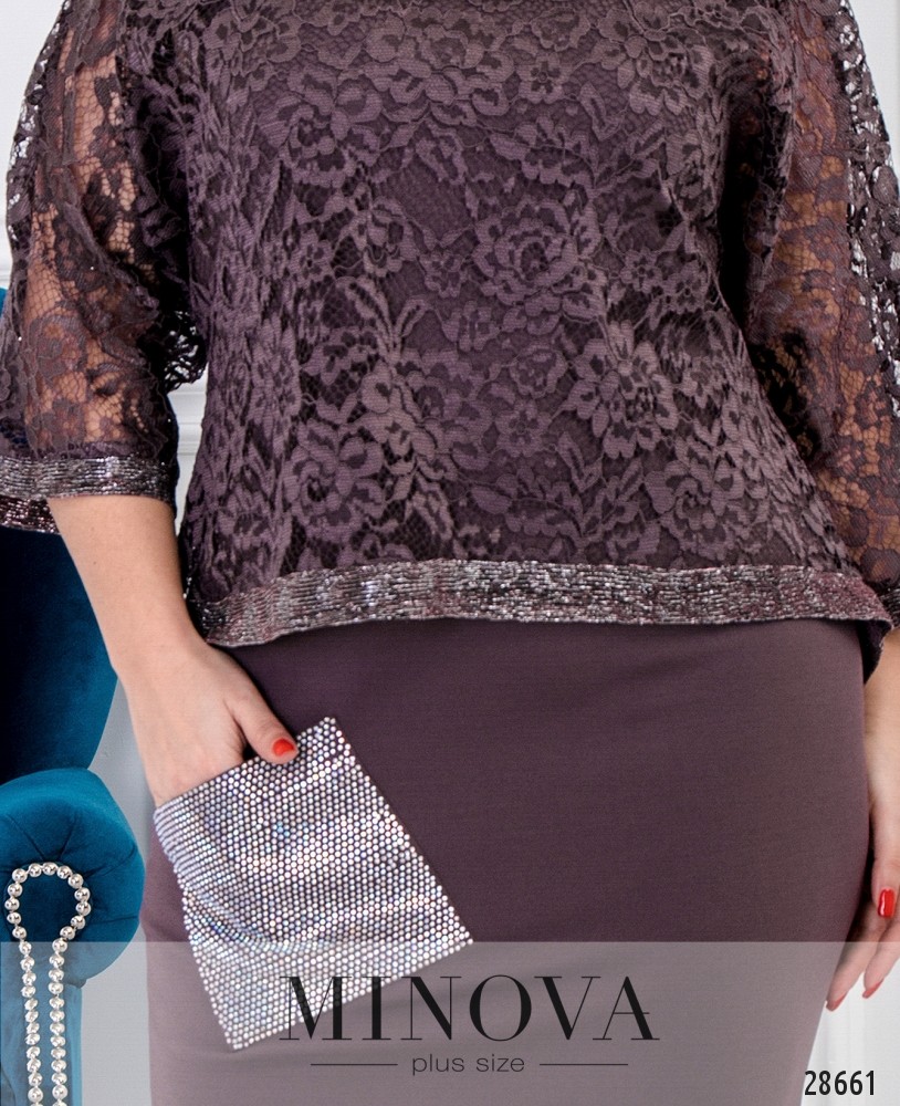 Оригинальное приталенное платье-миди с кружевным болеро. Трикотажное платье без рукавов с накладным блестящим карманом. К платью прилагается кружевное болеро с рукавами ¾ и блестящим кантом на подоле и рукавах. Спинка удлинена и закруглена.
