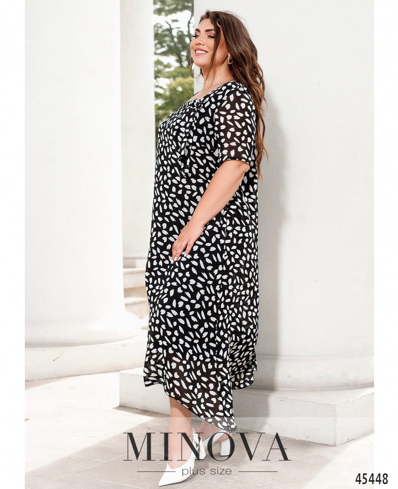 52 р-р: длина платья 120/127см, длина рукава от плечевого шва 26см, обхват рукава 38см, ОГ - 110см, ОТ -124см, ОБ -134см.