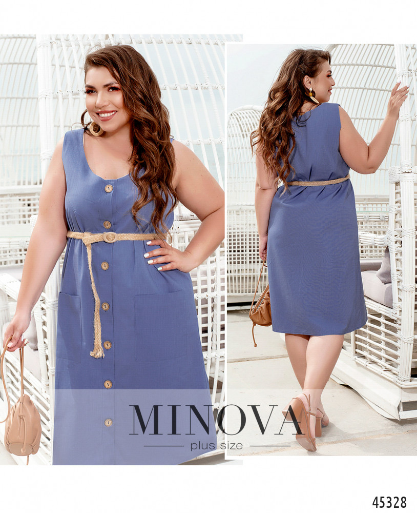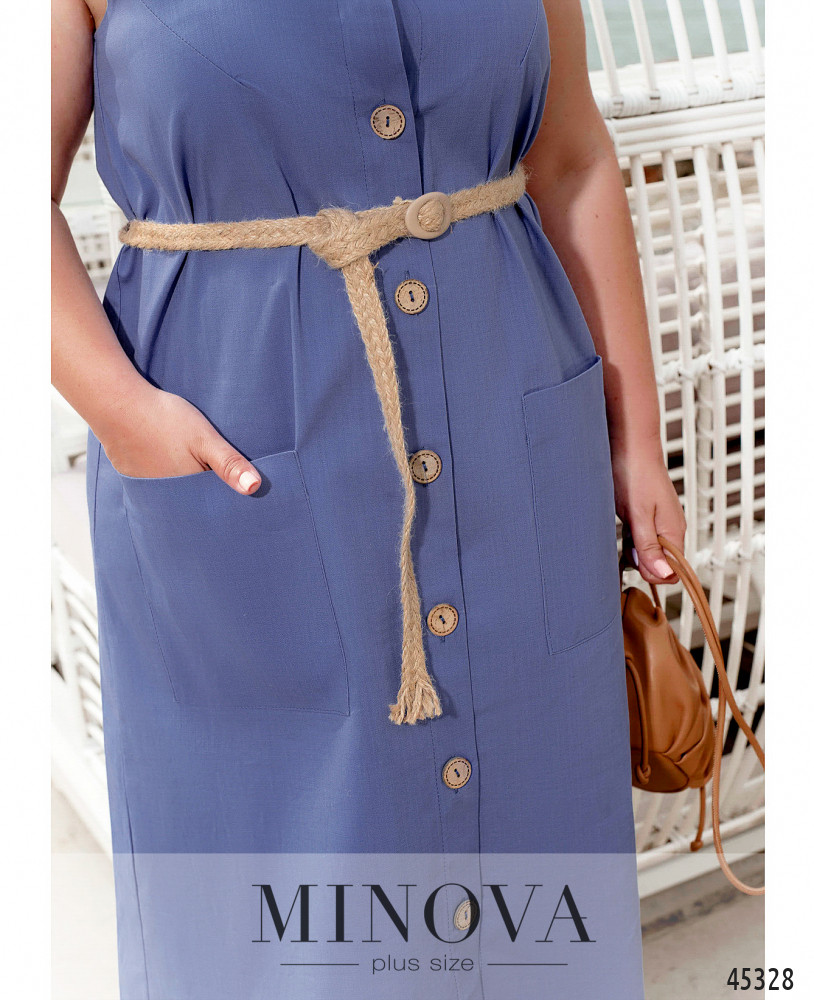 Лаконичное однотонное платье с накладными карманами и застежкой спереди на пуговицах выполнено из легкой дышащей ткани. Меняйте его силуэт от прямого к приталенному с помощью тонкого плетеного пояса, который идет в комплекте. Дополните эту модель босоножками, балетками или кедами для создания яркого летнего образа в стиле casual.