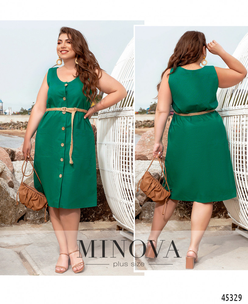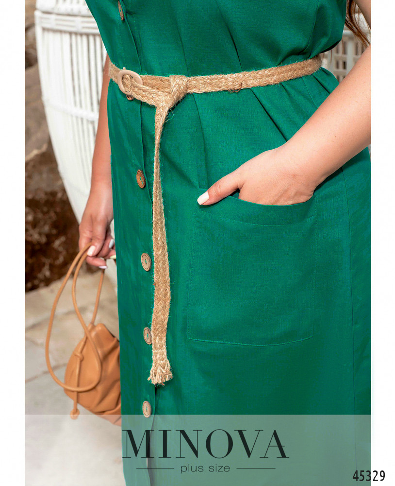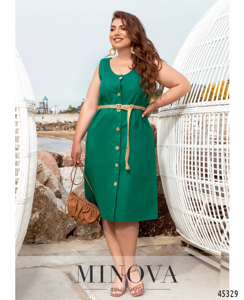 Лаконичное однотонное платье с накладными карманами и застежкой спереди на пуговицах выполнено из легкой дышащей ткани. Меняйте его силуэт от прямого к приталенному с помощью тонкого плетеного пояса, который идет в комплекте. Дополните эту модель босоножками, балетками или кедами для создания яркого летнего образа в стиле casual.