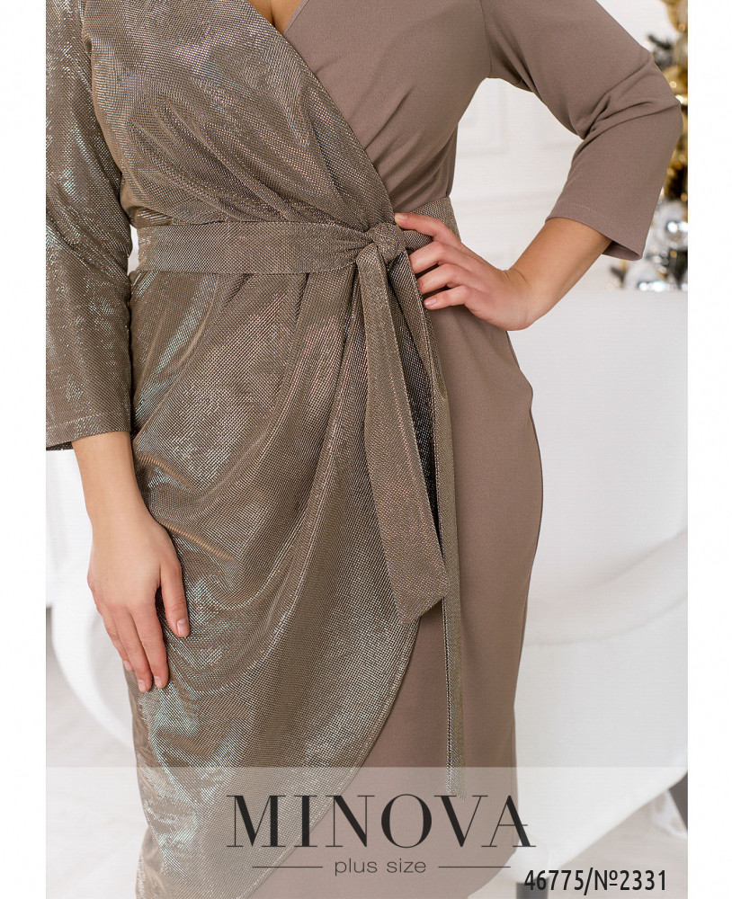 Мерцающее вечернее платье необычного кроя - отличный вариант для вечернего выхода. Спинка данной модели однотонная, а лиф и подол подшиты на запАх. Передняя часть дополнена контрастными половинами: матовой и блестящей. Платье с рукавами без манжет застегивается на змейку по спинке.