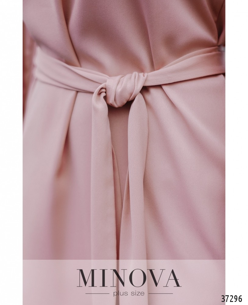 Минималистичное повседневное платье батал из лёгкой ткани. Крой свободный, в комплекте пояс. Рукава с мягкими манжетами, манжеты с одной пуговицей. Карманы и застёжки отсутствуют. Вырез декольте V-образный. Пояс/аксессуар входит в комплект.