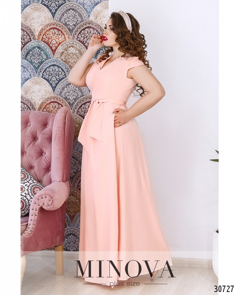 Нежное платье-макси в пастельных оттенках. Платье завязывается на запАх через петельку в боковом шве. Расклешенный подол дополнен вшитыми карманами.