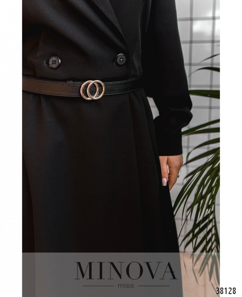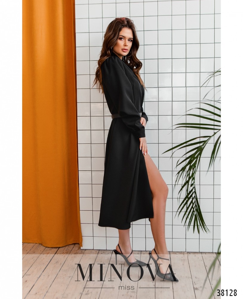 Нежное платье-пальто без подкладки, двубортное, застёгивается на две пуговицы на талии, подол подшит к верху и расклешён. Рукава с небольшими манжетами, на манжетах по одной пуговице. По бокам – врезные карманы.